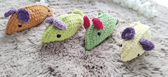 Myszka została zrobiona włąsnoręcznie na szydełku z włóczki. Skład włóczki: 55% Bawełna 45% Akryl.  Myszka dostępna na zamównie z terminem oczekiwania 5-7 dni roboczych.  W uwagach do zamówienia prosze wpisac kolor myszki.